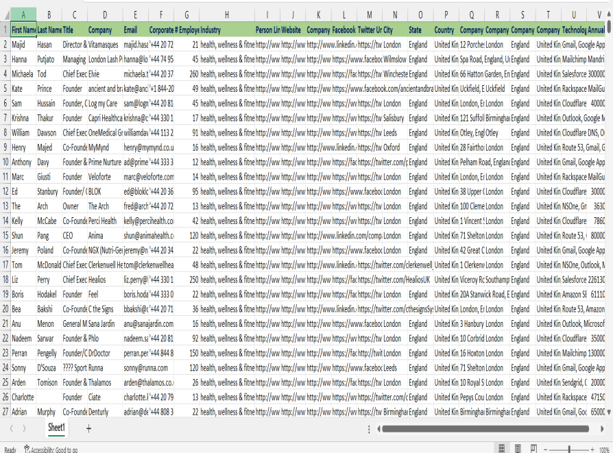 This premium dataset includes 10,000 verified executive-level contacts from the health and wellness industry across the United Kingdom. Perfect for fitness equipment suppliers, nutrition brands, wellness software providers, spa and therapy service vendors, and marketing agencies targeting decision-makers in gyms, spas, clinics, and wellness centers.