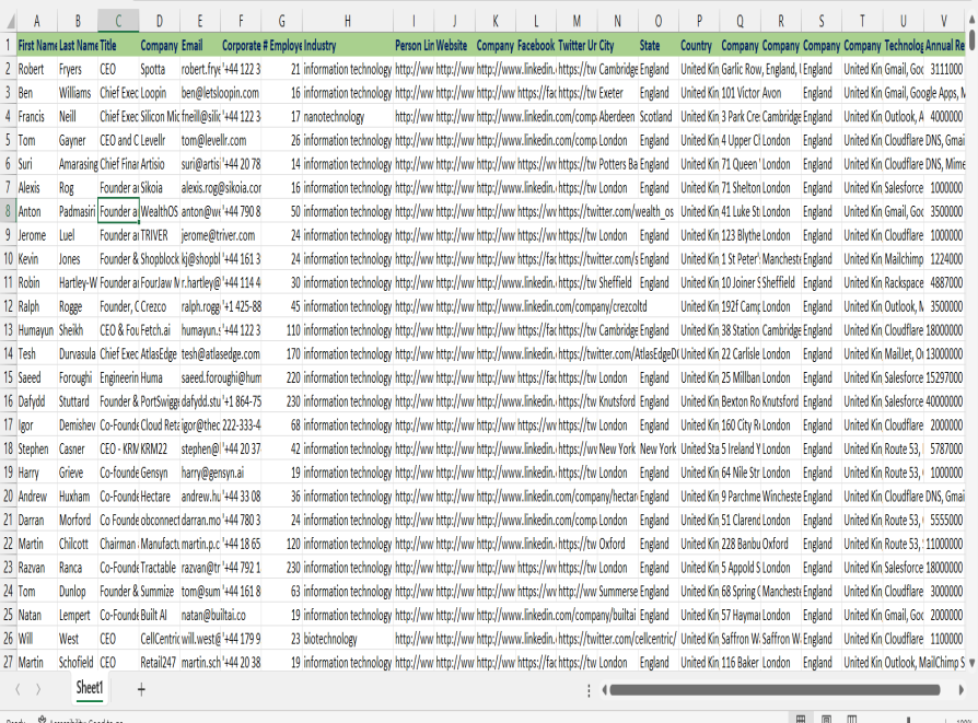 This premium dataset contains 10,000 verified executive-level contacts from the technology and biotechnology industries across the United Kingdom. Perfect for B2B marketers, software vendors, biotech firms, research institutions, and service providers targeting decision-makers in IT, software development, pharmaceuticals, medical research, and biotech innovation sectors.