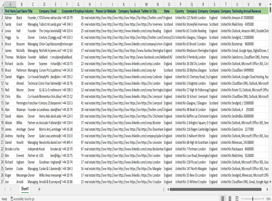 This targeted dataset contains 5,000 verified executive-level contacts from the real estate industry across the United Kingdom. Ideal for property developers, real estate software providers, construction companies, marketing agencies, and service providers looking to connect with senior decision-makers in residential, commercial, and industrial property sectors.