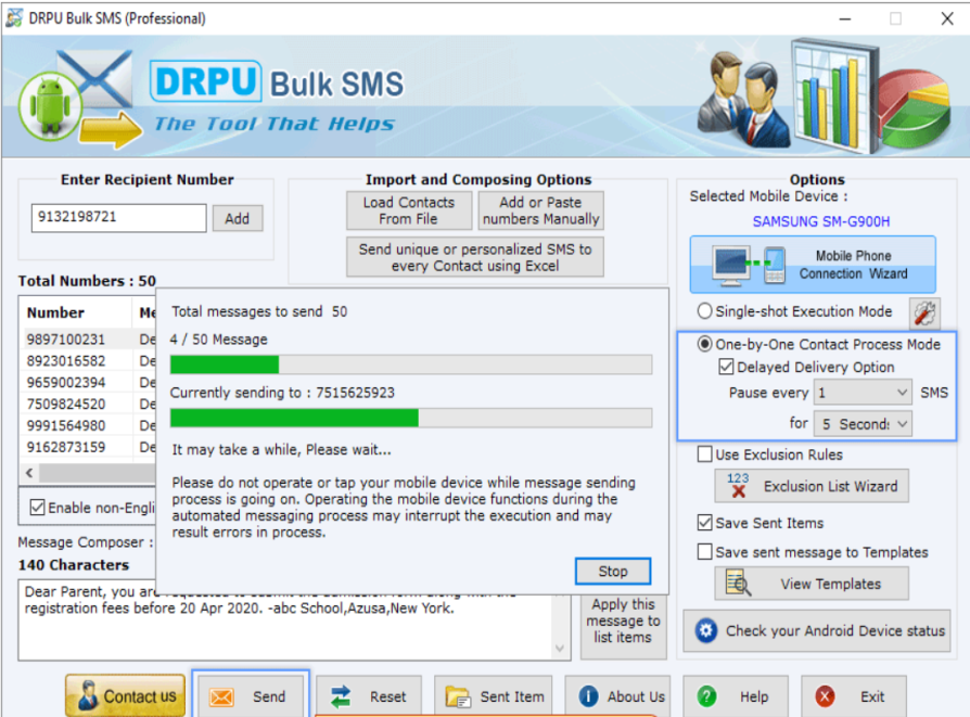 - Support for Unicode (send Urdu, Arabic, Hindi, etc.) and skip-duplicate options.