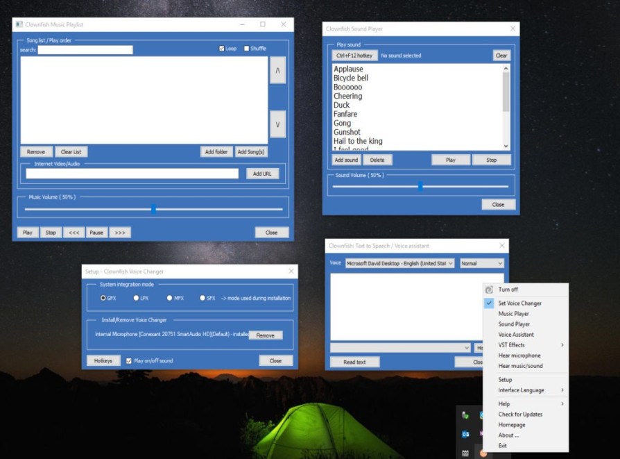 Clownfish Voice Changer is a free, real-time voice transformation tool that works system-wide on Windows. Once installed, every sound captured from your microphone will be modified before it reaches your communication apps. Perfect for online gaming, voice chatting, streaming, or just having fun with friends, it offers a wide range of voice effects and customization options – all at zero cost.